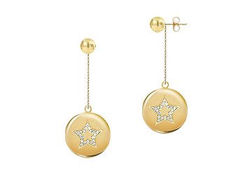 Black Friday Diamond Star Disc Earrings : 14K Yellow Gold - 0.30 CT Diamonds Push Back Deals