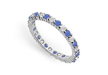 Black Friday Diamond and Blue Sapphire Eternity Band : 18K White Gold 1.00 CT TGW Size 15 Deals